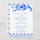 Algo azul antes que eu faça chá de panela vintage azulejos azuis florais azuis convite modelo download instantâneo, flores azuis poeirentas flores botânicas jardinagem temido chá de panela vitoriano.