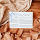 Esta placa de receita de algo azul antes de eu fazer Chá de panela apresenta um arco azul elegante para decorar seu chá de panela azul empoeirado ou bronze. Estes cartões de receitas são um belo toque para o seu chá de panela com o nosso "Algo Azul" Antes de eu fazer a decoração do Chá de panela. Possuindo um espaço abundante para escrever as suas receitas favoritas, será certamente uma encantadora manutenção na cozinha dos recém-casados durante anos.