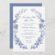 Coloque a palco para uma celebração de eterno com algo azul antes de eu fazer Chá de panela, apresentando um elegante quadro oval ao estilo vitoriano feito com delicadas e poeirentas flores azuis de aquarela. A perfeita mistura de charme de safra e beleza botânica, essa design é aprimorada com caligrafia graciosa para um toque sofisticado. Se precisar de ajuda para personalizar o seu convite, por favor, avise-me. Eu adoraria ajudá-lo!