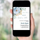 Um fundo branco chic. Decorados com folhas de eucalipto florais, de rosa e de cor aquosa verde, de cor azul empoeirada, verde e dourada. Personalize e adicione o nome da noiva a ser e detalhes. Texto: Algo azul antes de mim.
