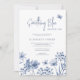 Flores silvestres e borboletas, azuis e poeirentas, botânicas e poeirentas, primavera, chás de panela botânicos elegantes, numa paleta de cor pastel delicada, de cor branca.
