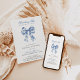 Este elegante Chá de panela "Algo Azul Antes de Eu Fazer" apresenta um arco de Chinoiserie azul pintado à mão com caligrafia moderna para dar o tom ao seu chá de panela! Edite facilmente a maioria dos textos para corresponder ao seu evento! As cores de texto e de fundo são totalmente editáveis —> clique no botão "Editar usando a ferramenta Design" para editar!