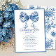 Celebre a noiva a ser com elegância eterno usando nosso Chá de panela Floral Chinoiserie "Algo Azul Arco". Este convite maravilhosamente desenhado apresenta delicados padrões florais inspirados na China, entrelaçados com um elegante arco azul, criando uma estética sofisticada e romântica. As matizes azuis de pó macio, detalhes botânicos complexos e o charme inspirado na safra tornam este convite perfeito para um chá de panela clássico, elegante ou com tema jardim. Quer você esteja hospedando uma festa de chá, um brunch ou uma reunião íntima, esta design define o tom perfeito para uma celebração na moda e memorável.
