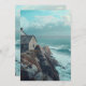 Arte digital com uma cabana medieval num penhasco a olhar para o oceano. Gerado por IA.