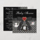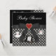 A Elegante Alice no Chá de fraldas preto das Wonderland convida com um padrão bonito de margaridas brancas em um fundo preto decorado com uma bonito fita e arco preto, um coração vermelho de tarte de geleia, uma garrafa de chá, uma xícara de chá e um chapéu de ódio louco! OBSERVE: Todos os elementos são impressos - não fitas e arcos reais. Se precisar de assistência para personalizar o seu produto, entre em contato comigo pela loja e terei todo o prazer em ajudar.