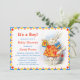 O coelho branco está tocando trombeta a notícia! É um menino! Um convite verdadeiramente encantador do chá de fraldas em cores preliminares felizes de vermelho, do azul e do amarelo.