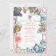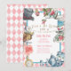 Não se atrase para um encontro muito importante com este convite de aniversário de Alice no País das Maravilhas, a aquarela, com tons de rosa e azul.