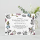 Vintage Alice no Convite de festas do Tea de Wonderland com listras brancas no verso. Personalize esta design alterando o texto, a cor do texto ou a cor do plano de fundo no sentido inverso.