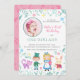 Alice no País das Maravilhas | One-derland First Birthday Invtions para o primeiro aniversario da sua menina. Apresentando Alice com um flamingo, o Chapéu Louco, sorrindo o Gato de Cheshire, e o Coelho Branco. Carregue sua foto favorita e sua filha é a Estrela do One-derland. Tema bonito e doce para um primeiro aniversário!