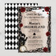 Alice no Wonderland Vintage Girl primeiro aniversario Dourado com convites à apresentação de brilho.