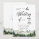 An elegant Wedding Invitation with watercolor mountains and pine trees that you can customize with your details.