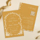 This All in One wedding invitation features an arched trellis adorned with florals, botanical foliage, and a small bird, with coordinating details on the back. For more advanced customization of this design, please click the BLUE DESIGN TOOL BUTTON above! Matching items are also available.