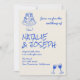 This double sided wedding invitation is perfect for your wedding, if you are looking for an elegant unique and easy editable all in one invitation .An elegant unique simple cream and blue wedding template invitation. Which features plain cream background. And blue hand written bride's and groom's first names. With hand drawn quirky illustrated wedding bows cake and wine glasses. And editable info with whole wedding details on the back. Affordable and it is also digital electronic e-invitation if you want to send it by text or email. All the info are customizable by clicking on the personalize button. So Grab it and make it yours so you make you invites engaged and excited .