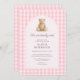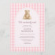 All in one baby shower invitation designed with a classic pink gingham pattern and a We Can Bearly Wait teddy bear theme. The layout allows all key event details to be included in a single, easy to read design while keeping the look soft and playful. Suitable for baby showers, bear themed celebrations, and cozy daytime gatherings. Fully customizable text with a clean, print-ready layout.