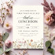 Ponha o tom para um evento gracioso com um convite para almoço de caridade elegante com um belo design de flor silvestre de aquarela. Acentos florais deliciosos adicionam um toque de beleza natural, enquanto a paleta de aquarela suave cria uma sofisticada e acolhedora atmosfera. Perfeito para uma reunião de caridade em grande escala, este convite reflete elegância e propósito, encorajando convidados a se unir por uma causa significativa. A combinação de design refinado e mensagens sinceras torna esse convite ideal para qualquer evento caritativo ou social.