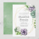 Convite de almoço de damas de honra de casamento com moldura geométrica dourada e fundo lavado em aquarela verde-sage para casamentos modernos com suculentas.