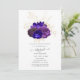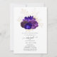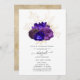 Convite de almoço de damas de honra com flores azul real, violeta e roxo com acentos de dourado em folha falsa personalizável para os detalhes do seu evento.