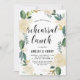 convide a família e os amigos para o seu evento com este convite de almoço do ensaio de flores. Apresenta uma camada floral de cor aquosa de pedras brancas e beges, verde e folha de ouro falsa e sotaques dourados falsos. Personalize este convite de almoço de ensaio em aquarela adicionando seus próprios detalhes. Este convite para almoço de ensaio de flores e verde está disponível em outras cores e estoque de papelão.