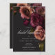 Embrace a elegância do eterno para a sua celebração inspirada em gótica com o nosso convite de almoço de noiva cativante. Um fundo preto suave proporciona a canvas perfeita para um buquê cativante, mas subestimado. Imaginem um arranjo de canto de flores de rosa silenciadas, onde borrão macio e ferrugem e matizes robustos se misturam com folhagem verde escura. Esta design etérea expele sofisticação silenciosa, perfeita para a noiva que procura um toque de escuridão romântica. Seus detalhes são mostrados em uma fonte moderna, garantindo que eles se destacam lindamente. Esta design encantadora cria um convite verdadeiramente inesquecível para o seu evento especial, dando o tom para uma comemoração elegante e humorística do amor. Criado pela imprensa simplesmente de farmácia.