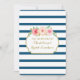Convites personalizados para almoçar nozes de noiva em padrão de listras marinho azul e branca, flores coloridas cor-de-água coloridas e detalhes dourados.