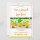 Convite moderno e colorido para uma Páscoa Brunch e Ovo Hunt com pintinhos amarelos e ovos verdes. O texto é personalizável, basta clicar em "Personalizar este produto".