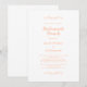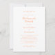 Elegante, romântico e moderno, o convite para o café da manhã das damas de honra de casamento em tons de pêssego e branco apresenta um design clássico formal tradicional atemporal. O acabamento sem bordas permite que você escolha facilmente o formato de papel favorito para o visual final. Um fundo transparente permite que a beleza da sua escolha de papel seja apreciada na frente e no verso do cartão. Dois floreios decorativos, cada um contendo um único coração, embelezam a escrita. Personalize com seus detalhes em letras e escrita delicadas. Para obter resultados ótimos, substitua os detalhes do modelo pelos seus próprios detalhes, deixando espaço entre os parágrafos como no exemplo, e capitalize onde especificado ou se a palavra for um substantivo próprio e normalmente capitalizado. Envie um e-mail para invitationsuites@gmail.com com perguntas ou solicitações de cores personalizadas.