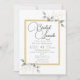 Eucalipto e mirtilos, desenhados à mão em lápis clássico de grafite e em camadas, alguns em ouro (digitalmente), fazem um modelo moderno, sofisticado, elegante e chic, que tem uma tomada moderna em um tradicional quadro de casamento floral. A textura do lápis preto aparece no papel branco, dando-lhe uma sensação de elegância sem esforço. O quadro é também uma versão atualizada de um clássico, dando à estrutura design, mas mantendo uma noção de frescura moderna. Ele apresenta um roteiro de caligrafia moderno para o título, "Almoço de Bridal". Um design eterno para um inverno, primavera, Verão ou casamento outono, mas também uma escolha adorável para um inverno ou chá de panela de outono, com as suas cinzas neutras e ouro.