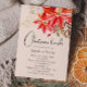 Este moderno convite para o almoço floral de Natal de Boho tem um design brilhante e elegante com ilustrações de aquarela vibrantes de poinsetos vermelhos e cor-de-rosa e delicados verdes de inverno. Com elementos botânicos quicos como pinho, sagrado e bagas de inverno, a paleta colorida do cartão, incluindo rosa poeirento e sotaques de ouro, adiciona um toque de boho a uma estética de férias moderna. Esta design de dezembro festiva combina uma vibração leve e caprichosa com um tema floral perfeito para a época de Natal.