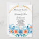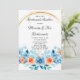 Espero que gostem destes Florais botânicos azuis-claros e laranja com uma estrutura geométrica dourada. Os produtos e convites correspondentes estão disponíveis.