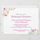Flores coloridas num spray em forma de coração com fita em convite para almoço floral cor de rosa, verde, azul, laranja e amarelo. Edite este convite colorido com suas próprias palavras. Arte com aquarela e design por Sarah Trett para www.mylittleedenweddings.com