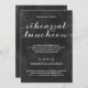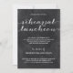 Este elegante convite de ensaio estilo 'chalkboard' apresenta uma fonte de caligrafia manuscrita e caprichosa, estilo vintage, e um fundo de quadro. Os detalhes do evento podem ser personalizados para a sua parte.