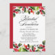Estes elegantes convites para o almoço de chá de panela de casamento apresentam um belo quadro floral de aquarela cor de natal verde-sagrado e bagas em tons de vermelho e verde. O texto do convite preto clássico com acentos de script de caligrafia pode ser personalizado com o nome da noiva e as informações especiais do evento. Perfeito para um evento de chá de panela de férias de dezembro.
