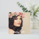 Modelo para sua própria foto. Na frente: Sobreposição de texto branco: Olá 30! O texto é escrito com um moderno estilo escrito à mão. Fundo: fundo branco e letras cor púrpura escuras. Modelos para um nome e detalhes da festa.