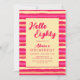 Este belo e colorido convite de 80 de aniversário apresenta um padrão sem descontinuidades de faixas que contém cores rosa, vermelha, laranja e pêssego.
