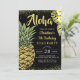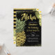 Aloha Black Dourado Tropical Pineapple Aloha Convite de Aniversário