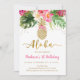 Convites Aloha Floral Dourada de Abacaxi Rosa, Aloha, Anive