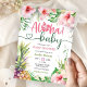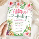 🍼 🌸 Celebrar a nova chegada ao estilo luau com este adorável convite de chá de fraldas "Aloha", com florais cor-de-rosa vibrantes e vibrações havaianas — perfeito para a sua celebração temática tropical! 🍼 🌸