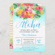 Celebre aquele aniversário especial com este convite de festas de luau, tema havaiano. Apresenta cor brilhante "Aloha!" em um elegante roteiro azul, com hibisco rosa tropical, plumeria e verde. O texto pode ser totalmente personalizado para o seu evento especial. A parte traseira apresenta design tropical de cor brilhante com faixas de brilho dourado sujo. Perfeito para aniversários, graduações, casamentos e chás. Etiquetas de endereço, adesivos, t-shirts e mais disponíveis na minha loja. Design ©Rosalind Moore, Design de Cherry Lane.