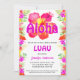 O convite do chá de panela de casamento mostra Aloha colorida contra uma flor de hibisco tropical brilhante, emoldurada com flores exóticas, e personalizada com sua informação. Uma maneira divertida de convidar convidados para o seu dia especial!