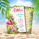 Um convite de Luau para Graduação da Aloha tropical desenhado com folhas de palma exuberantes e um flamingo divertido cercado por flores exóticas! Você fará memórias tão coloridas quanto um pôr do sol Hawiian com este convite! Personalizado com suas informações de evento, perfeito para Luau, Partido da Piscina ou Barbeque. Então pegue sua saia de grama, poeira de seus flip-flops e se prepare para hula!
