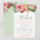 Celebre seu formando com este tema na moda Havaiano Graduação Convite de festas Luau. Apresenta "Aloha" em uma escrita de moda com um biodisco tropical exuberante, florais e verde e personalizado com seus detalhes de evento. O verso apresenta buquês florais tropicais. Para personalizar este convite, clique em "Editar Usando a Ferramenta de Design" para alterar a cor de fundo, a fonte, etc.