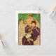 Cartão com a poster litográfica de Alphonse Mucha Lorenzaccio (1896). O eponímico Lorenzaccio da peça, em que as estrelas Sarah Bernhardt, está vestido de roxo e preto, segurando um livro. Um dragão verde o ignora. Um presente de excelente para fãs de Arte Nouveau e de Arte Checa.