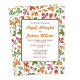Bonito e colorida Mudança deixa Casamentos outono Convites projetados com detalhes personalizados de celebração de casamentos impressos em laranja e marrom sobre um fundo com tema de outono de folhas mudando de cor em verde, laranja, roxo e amarelo. Personalize estes convites para os seus casamentos outono durante os meses do outono.