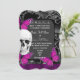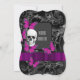 Fantasia de alternativos púrpura estilo gótico, crânio floral, convite de casamento tradicional, no escuro negro barroco úmido, convidam um profissional de fundo em forma de quadro de cinza, com bonito borboletas coloridas, personalizam facilmente a noiva e os nomes dos noivos para os modelos, para criar um convite personalizado único para o seu gótico especial, rochedo ou alternativo ocasiões e celebrações românticas. Visite a LOJA PERSONALIZED_WEDDINGS para combinar conjuntos coordenados de suítes de casamento. Pode ser facilmente personalizado para outras ocasiões e celebrações especiais.