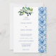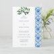 Convite para o casamento do Amalfi Coast Italy Mediterranean Olive Branch, com azulejos azuis. Bellissima Italia © Você pode personalizar com seus nomes e texto. Você pode alterar a cor do texto e o estilo da fonte usando a opção personalizá-lo. NOTA: as cores exibidas on-line podem variar ligeiramente do produto real.