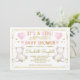 Convite lunático do chá de fraldas que caracteriza dois gatinhos adoráveis com os balões no rosa e no ouro