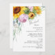 Folhagem, Girassóis e Peões Rosa, chá de panela elegante. Fundo branco. Amor Brilhante. Texto preto.