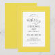 Este convite de casamento amarelo e branco apresenta um design elegante com bordas duplas, com uma moldura interna branca delicada e caligrafia cinza carvão em um fundo branco crocante. O modelo de data moderno complementa a escrita refinada e destaca os nomes do casal para uma apresentação limpa e sofisticada. A parte de trás do convite é finalizada em amarelo sólido para completar a aparência coordenada. Personalize com os detalhes do seu casamento e sinta-se à vontade para entrar em contato para pedidos personalizados.