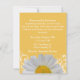 Chá de panela chic feito em amarelo, com gráficos de uma grande margarida branca e floreados brancos, decorando o fundo. Personalize o texto branco, na frente e atrás do convite, para atender às necessidades do seu chá.
