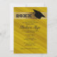 Convite amarelo mostarda / festa de formatura dourada com uma faixa de ouro e um boné de formatura preto.